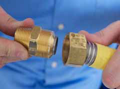 Après le test d'étanchéité au gaz, des précautions doivent être prises après l'essai de pression pour s'assurer qu'aucune partie du tube en acier inoxydable ne soit visible. Toutes les parties en acier inoxydable dénudées à l’arrière de l'écrou du raccord doivent être enveloppées avec du ruban silicone auto-amalgamant TracPipe ®. Cela va réduire la possibilité future d’attaque corrosive.
